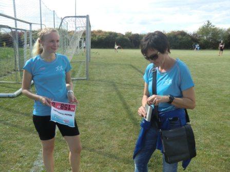 Aber irgendwie saß der Frust schon ein wenig tief, denn es waren nur noch wenige andere Läufer in der Wechselzone als die Startläuferin Susanne mit schmerzverzerrtem Gesicht auf den Schulsportplatz einlief. Leider hatte sie Muskelprobleme bekommen und konnte die letzten 500 m nur noch gehen. Dagegen lief es bei ihrem Bruder Tobias optimal und er unterbot die Vorgabe des Herren-Teamleiters Erich um 30 Sekunden und lief die Strecke in 29:31 Minuten. Damit hatte unser Herrenteam Abbacher Pfundskerle bereits über 17 Minuten Vorsprung auf die Prosecco-Girls. Das war heute nicht mehr einzuholen - das sei an dieser Stelle schon verraten und war bereits da jedem klar.